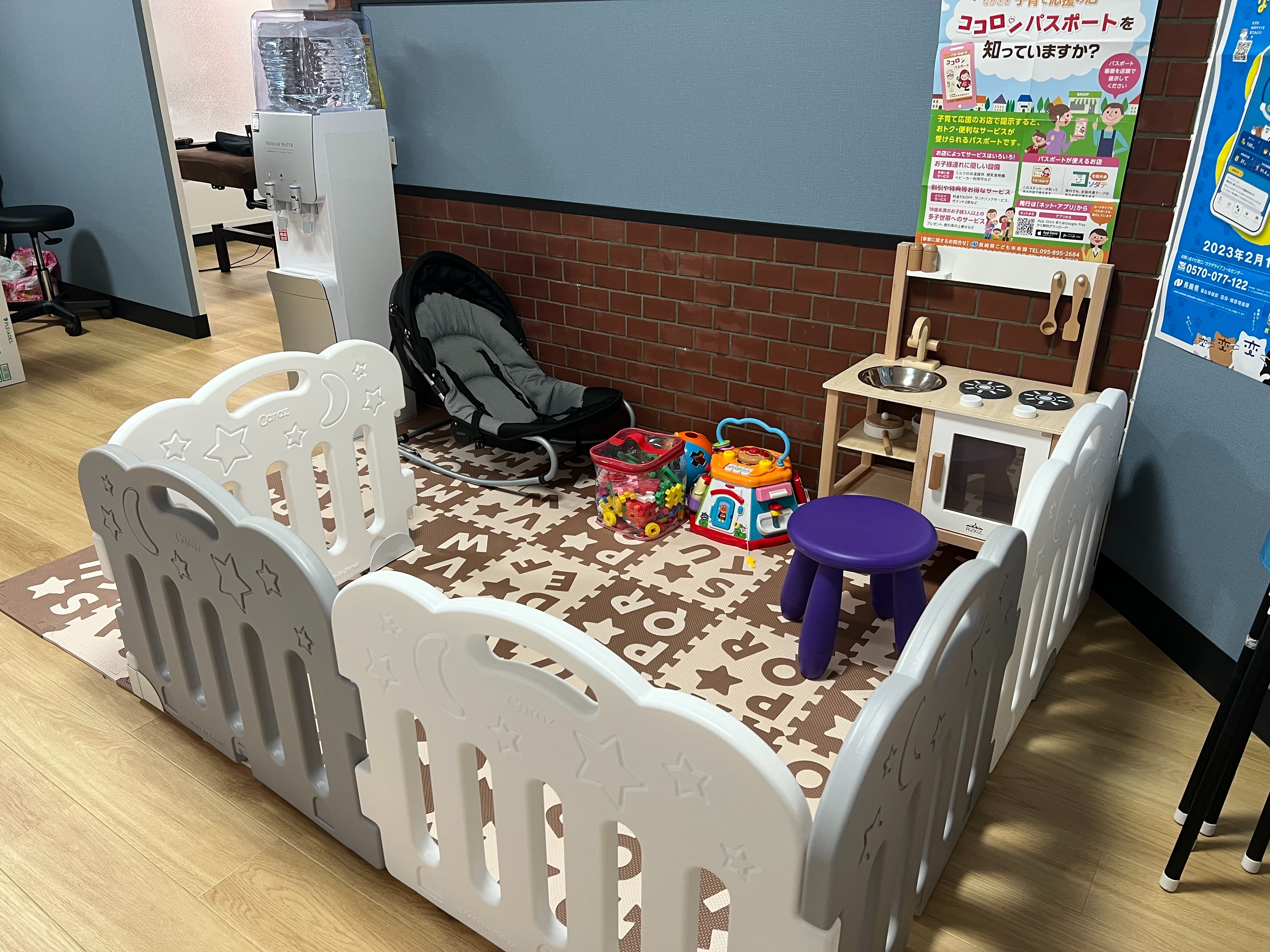 産後のママさんが安心して来院できるよう配慮しています。お子さんがいらっしゃると、どうしても自分の体のことは後回しにされるお母さんが多いです。